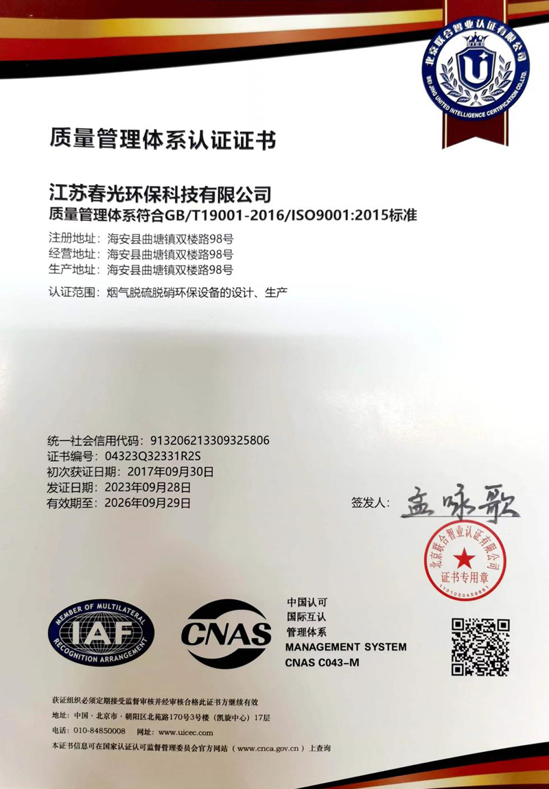質量管理體系認證證書